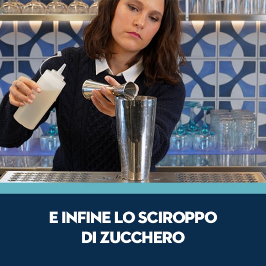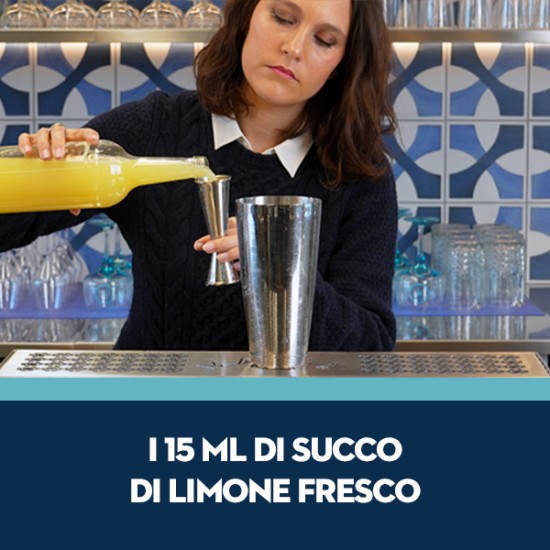 - Inserisci i primi quattro ingredienti all’interno dello shaker e inizia a shakerare;
